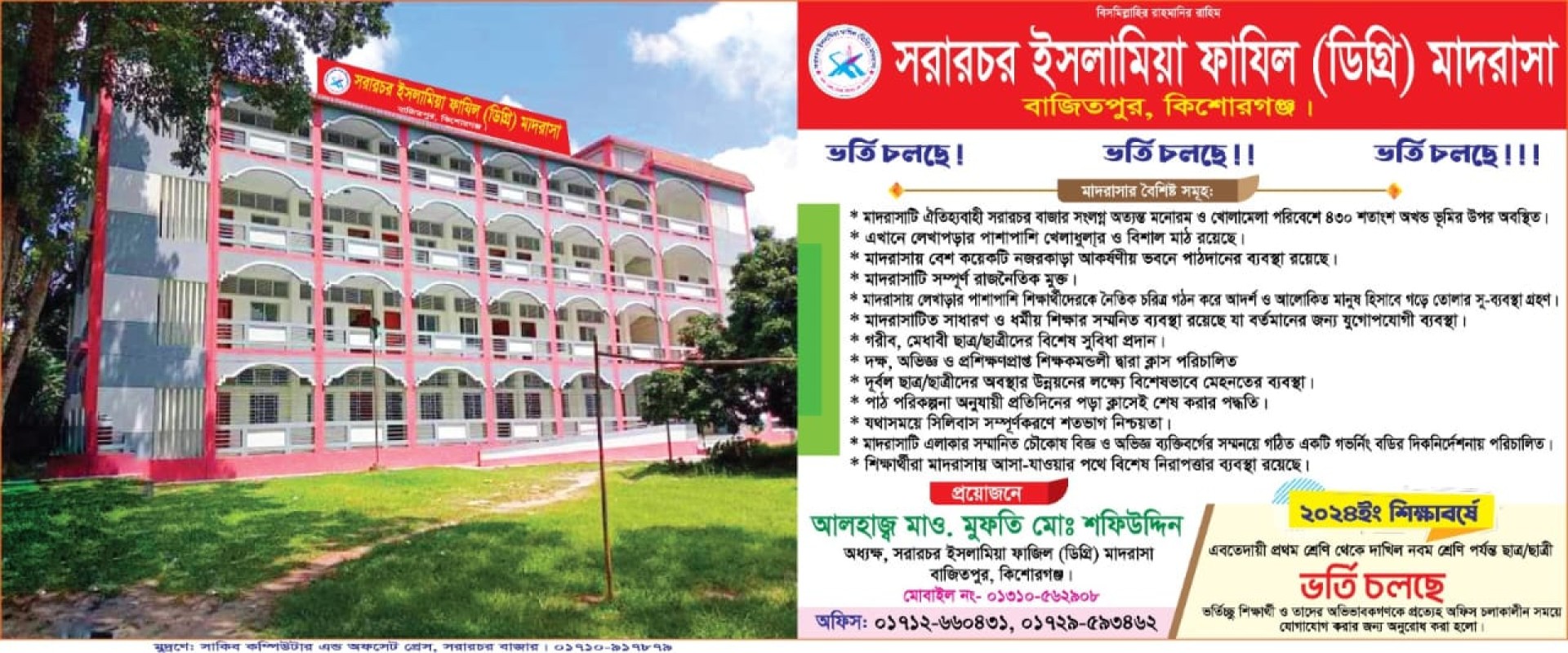 তোমরাই সর্বোত্তম জাতি, তোমাদেরকে মানবতার কল্যাণে সৃষ্টি করা হয়েছে-” [সূরা আলে-ইমরান- ১১০] সরারচর ইসলামিয়া ফাজিল (ডিগ্রী) মাদ্রাসা গণপ্রজাতন্ত্রী বাংলাদেশ সরকার অনুমোদিত একটি অলাভজনক এবং অরাজনৈতিক প্রতিষ্ঠান; যা ১৯৭৭ সাল থেকে একটি শিক্ষা মিশন হিসেবে কাজ করে যাচ্ছে। অবারিত সম্ভাবনার এ বাংলাদেশের মানবসম্পদকে সুশিক্ষায় শিক্ষিত করে গড়ে তোলা, অবহেলিত মাদরাসা শিক্ষার আধুনিকায়ন, আদর্শ মানুষ তৈরি, বেকারত্ব দূরীকরণে প্রকল্প পরিচালনা, জাতি গঠনে বিশেষ কার্যক্রম গ্রহণ, আর্ত-মানব সেবা, গবেষণা কার্যক্রম পরিচালনা, ইসলামি সংস্কৃতির লালন ও বিকাশ সাধন, সুশিক্ষা বিস্তারে মননশীল প্রকাশনা, আলকুরআন শিক্ষার প্রচার ও প্রসারসহ নানাবিধ কার্যক্রম পরিচালনা করছে তানযীমুল উম্মাহ ফাউন্ডেশন। সরারচর ইসলামিয়া ফাজিল (ডিগ্রী) মাদ্রাসা এক বাস্তবসম্মত এবং সুনির্দিষ্ট কর্মসূচি নিয়ে অগ্রসর হচ্ছে |